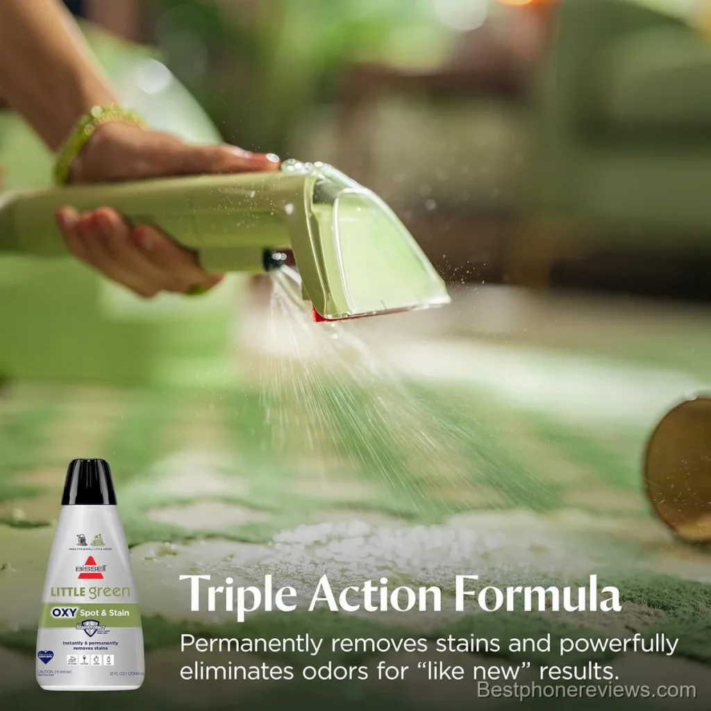 The BISSELL Little Green solves this by utilizing a highly effective “Triple Action” system. Here is exactly how it physically extracts messes from your home: